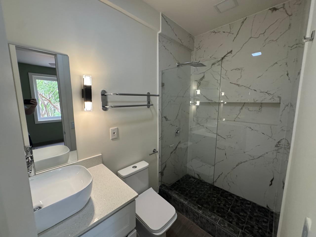 This stunning upper-level condo features two spacious bedrooms, each with its own ensuite bathroom, offering comfort and privacy. The open-concept kitchen and living area boast elegant quartz countertops and large windows that fill the space with natural light and open onto a covered terrace with beautiful views of the Caribbean Sea.