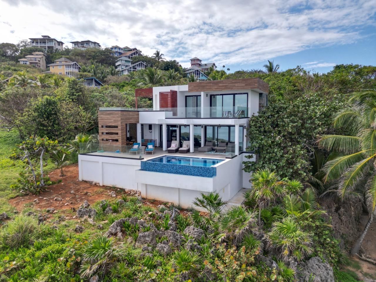 Spanning an impressive 2800 square feet, this stunning home boasts sweeping views of the crystal-clear Caribbean Sea from both floors. With two master suites, this immaculately designed concrete home exudes sleek modernist elegance and offers a luxurious and comfortable living experience.